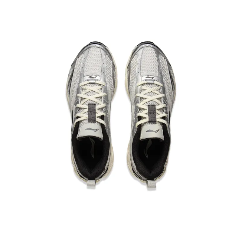 LiNing Амортизация Противоскользящий Устойчивый к износу Низкий отскок Низкий топ Повседневные беговые кроссовки Мужской Серебристо-серый