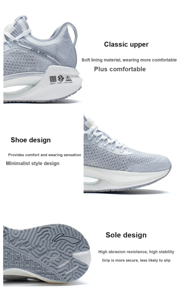 LINING Shadow Essential Дышащий и Устойчивый Низкий Топ Беговые кроссовки Женские Серебряные