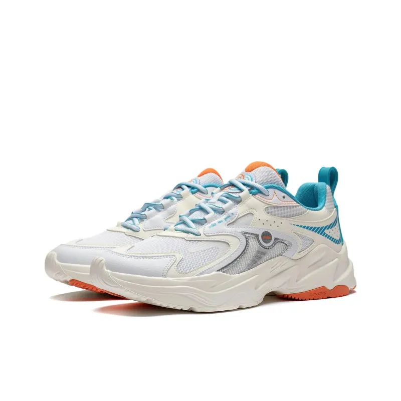 LiNing Meteor Шокаблоки Противоскользящие Устойчивые к износу Низкий Топ Беговые кроссовки Мужские Айвори Океан Бирюзовый