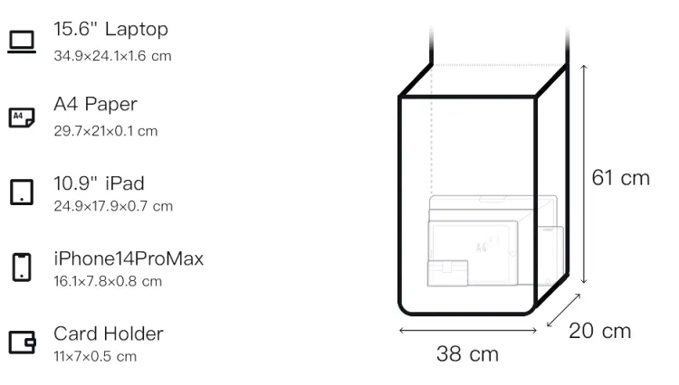 Д38*Ш20*В61см