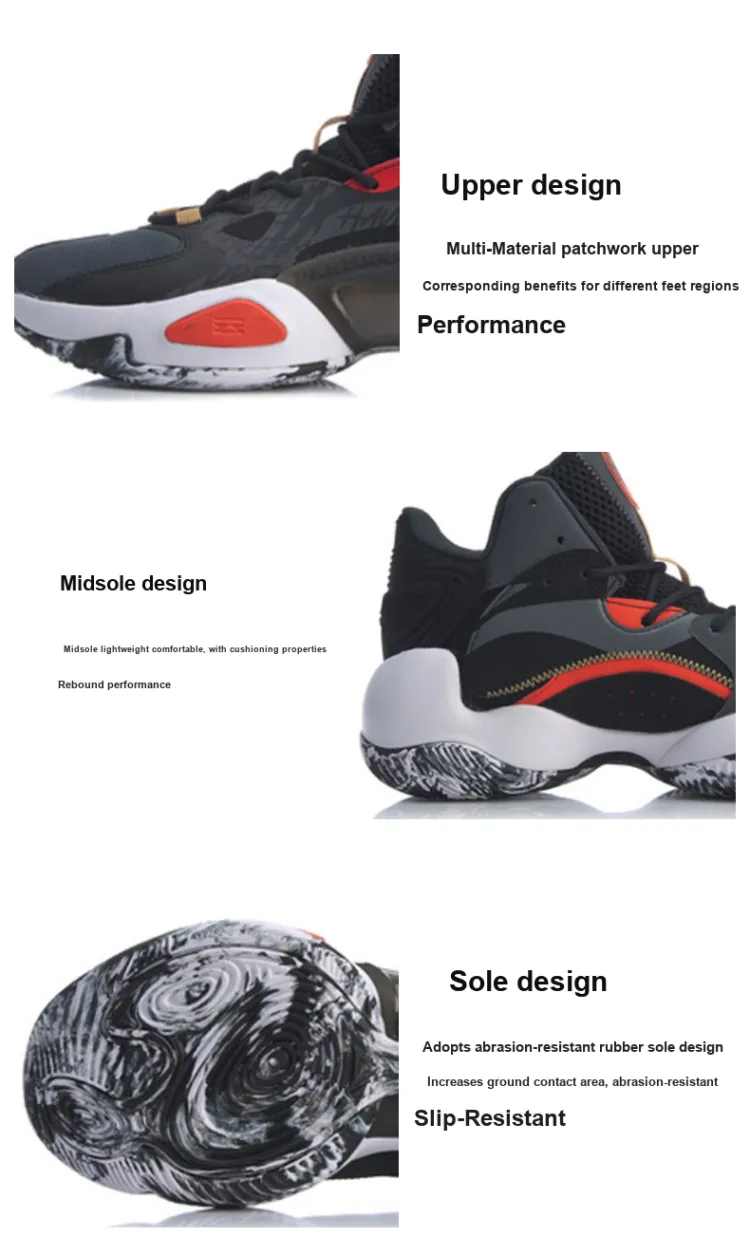 LINING Power 6 V2 Амортизаторы Shock Resistant MID Баскетбольные кроссовки Мужские Черные Красные
