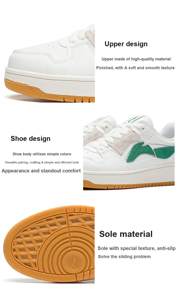 LiNing Slip-resistant Амортизация Устойчивость к износу Легкий Дышащий Низкий Топ Скейтбординг Кроссовки Мужские Белый Зеленый