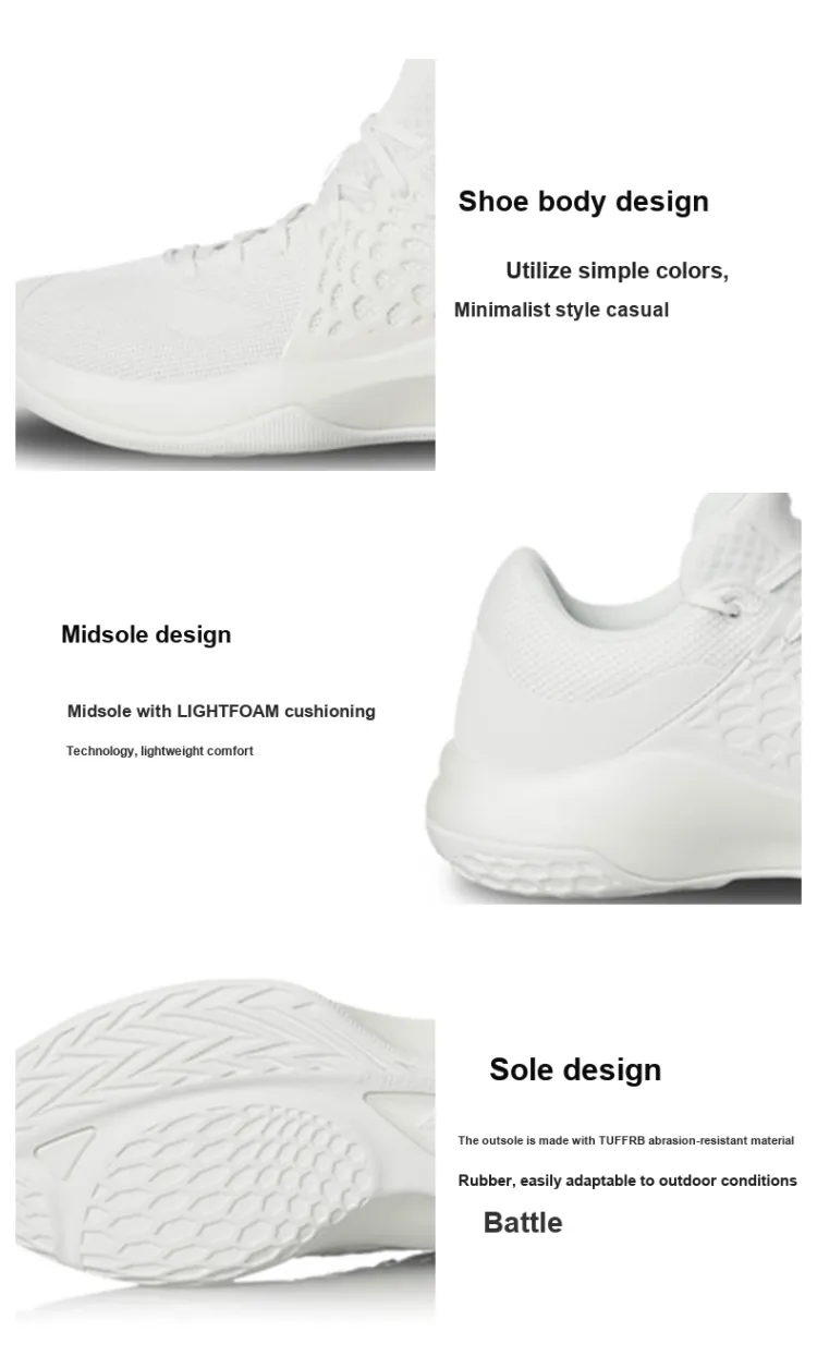 Подкладка SONIC TD противоскользящие устойчивые к истиранию дышащие низкий топ баскетбольные кроссовки мужской белый