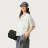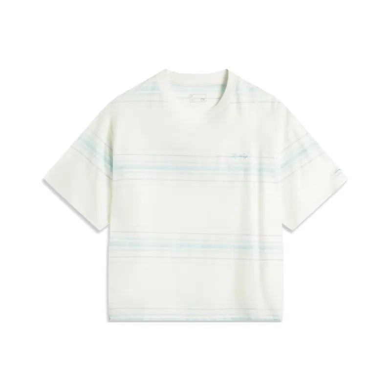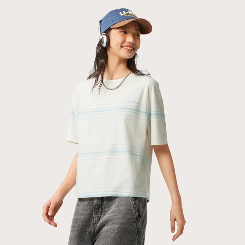 LINING Sports Life Collection T-Shirt Женская Айвори Светло-Небесно-Синий Полосы