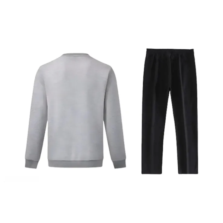 Комплект:Фотиния Серый Пуловер Толстовка + Черные Прямые Брюки для Тренировок