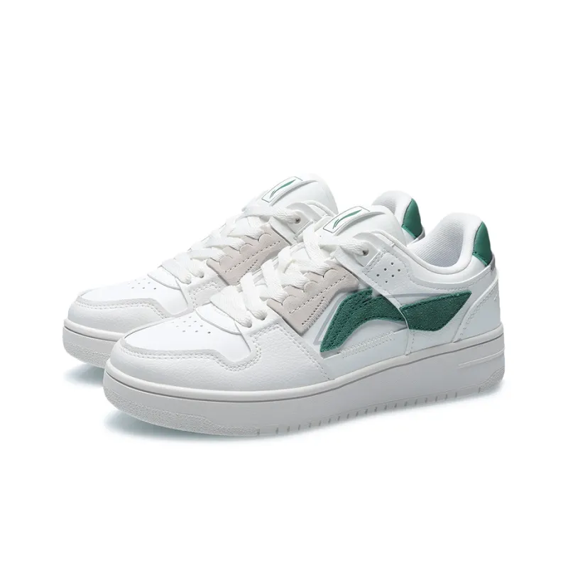LINING Tianji Series Slip-resistant Abrasion-resistant Lightweight Low-Top Skateboard Shoes Women's White Green Лайнинг Tianji Series противоскользящие устойчивые к износу легкие низкие кеды для скейтбординга женские белые зеленые