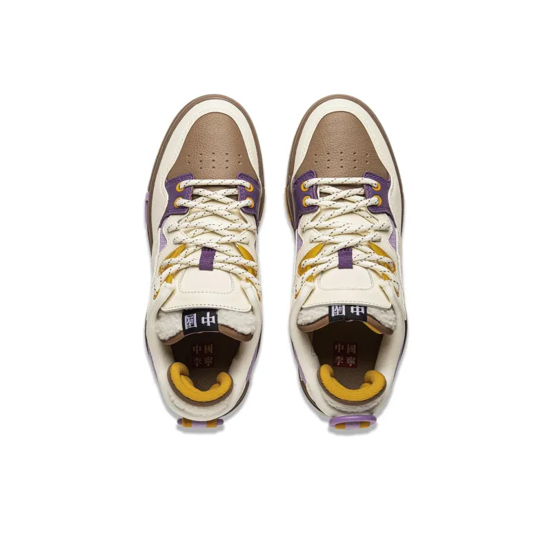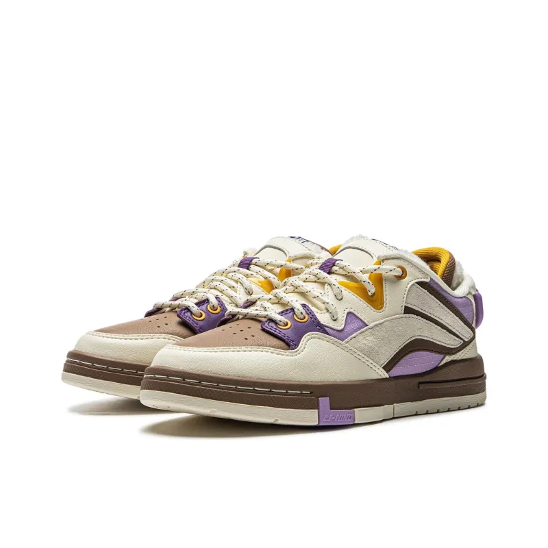 LiNing Wave Pro Slip-Resistant Abrasion-Resistant Низкие Кроссовки для Скейтбординга Женские Белые Коричневые Фиолетовые