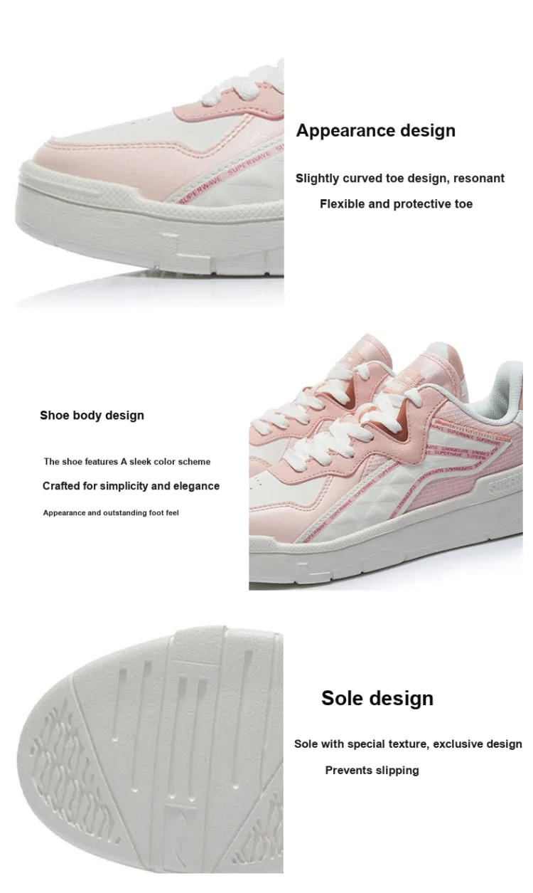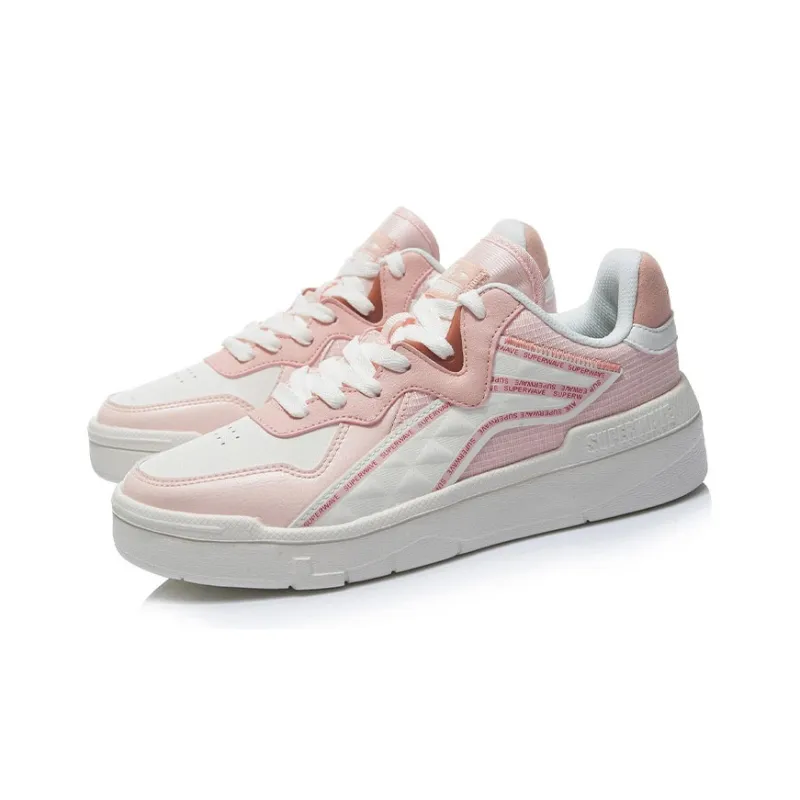 LINING Wave SUPERWAVE Лайт Противоскользящие Устойчивые к износу Низкий Топ Скейтборд Кроссовки Женские Розовые Белые