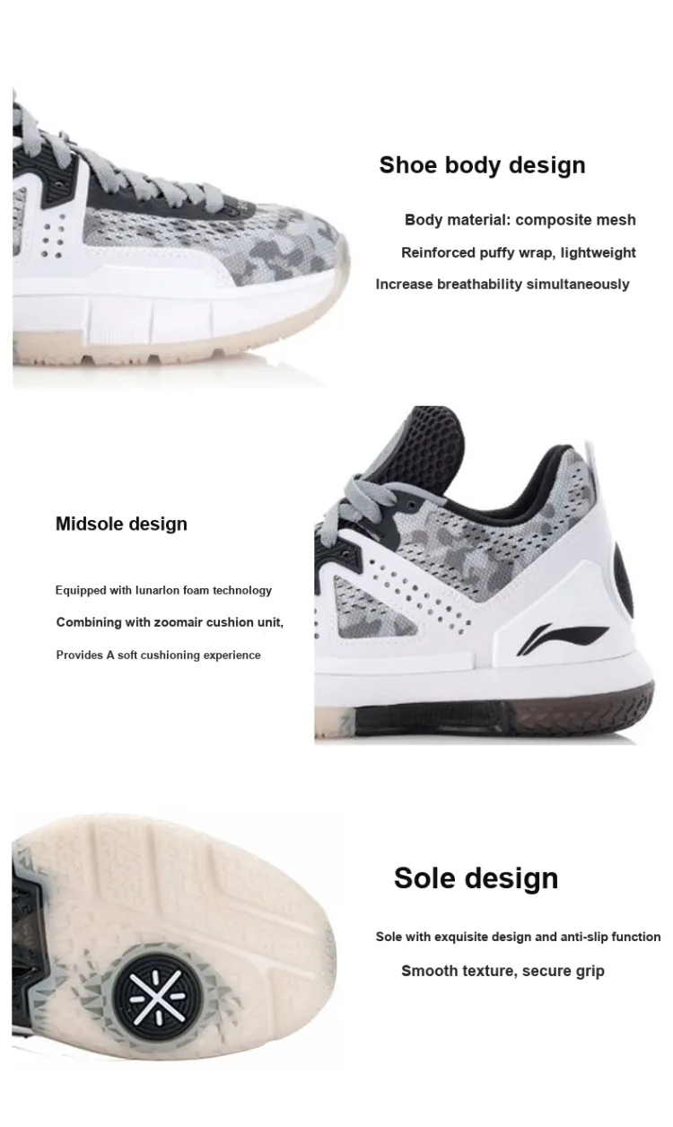 LINING WOW 5 Low Топ Баскетбольные кроссовки Мужской Серый Белый