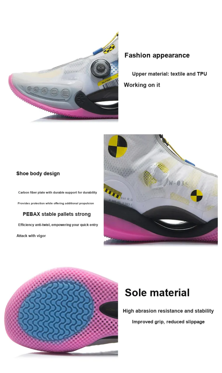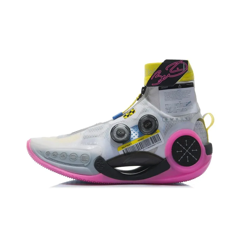 LINING WOW 9 Infinity 'TEST R2' Амортизация Поддержка Высокие Баскетбольные Кроссовки для Игры Мужские Белые Розовые
