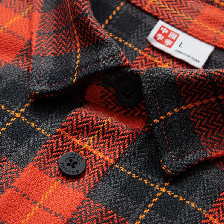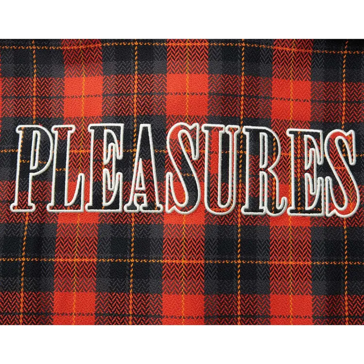 LINING X Pleasures Рубашка Мужская Огонь Красный Обсидиан Серый Клетка