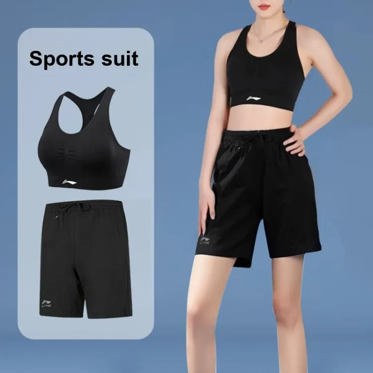 LINING Одежда Комплекты [Ночной Черный Топ + Ночной Черный Шорты] Женские Йога Наборы