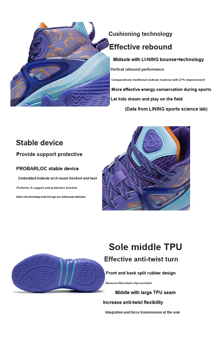 LINING YOUNG Avant Garde Пава I Команда Амортизация Устойчивость к износу Отскок Поддержка Баскетбольные кроссовки