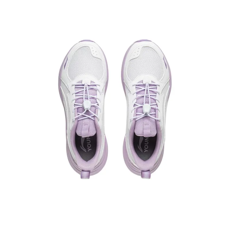 LINING YOUNG Беговая нижняя юбка устойчивая к истиранию низкий топ беговые кроссовки белый фиолетовый детский