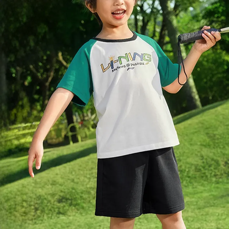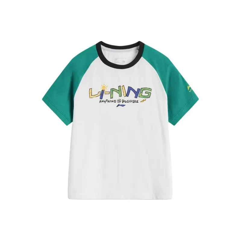 LINING YOUNG Sportlife T-Рубашка SS25 Стандартный Белый Черный Дети Возраст 3-7 Лет