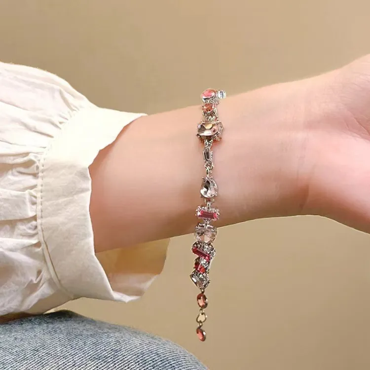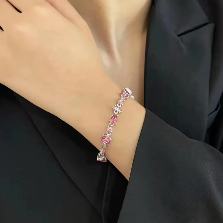 Стиль:Розовый циркон, конфетный цвет, браслет