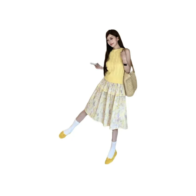 Жёлтый верх + цветочная юбка