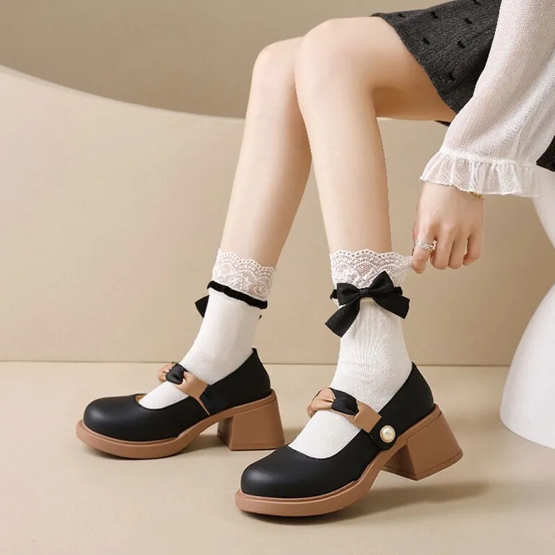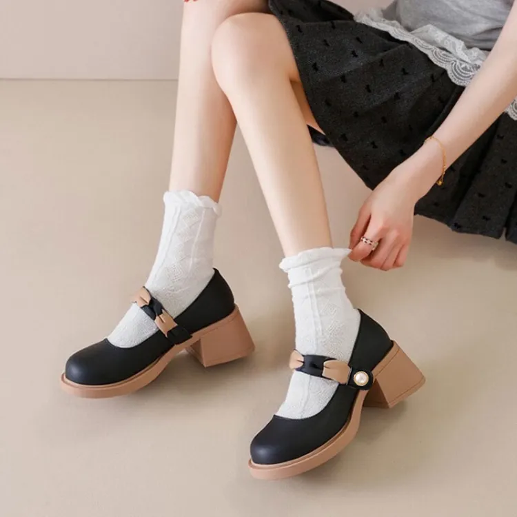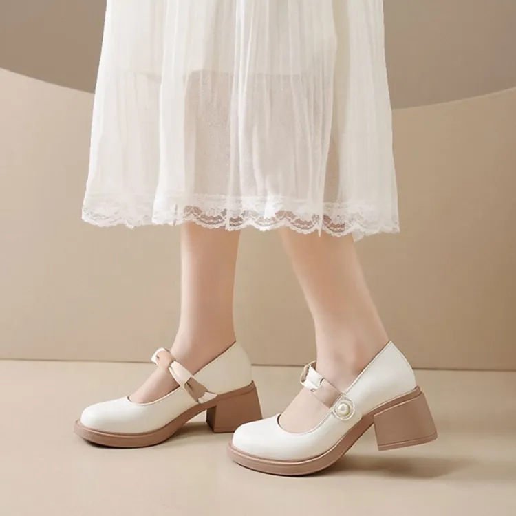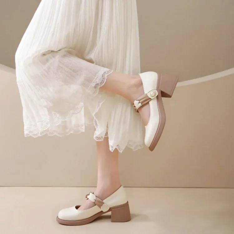 Little Red Man Грубый каблук Туфли Мэри Джейн Женские