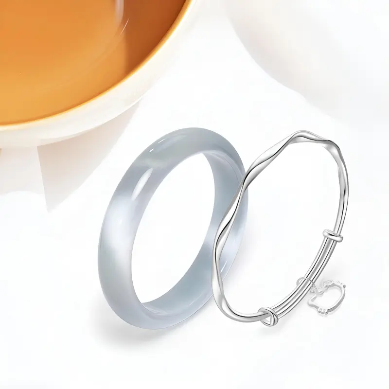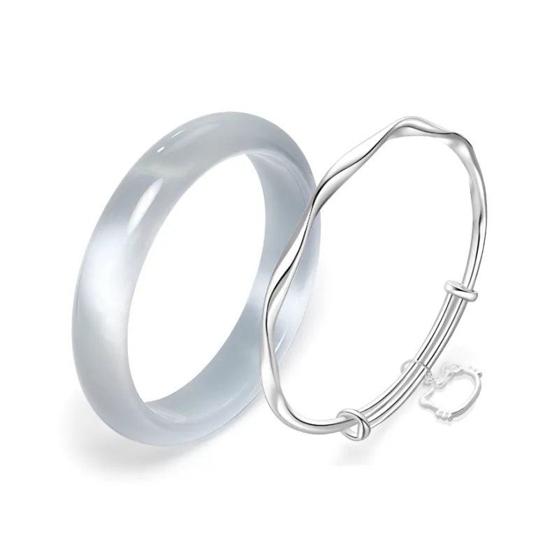 Мёбиус Твист Кольцо Серебряное Кошка Браслет + Ледяной Синий Нефритовый Браслет 60#
