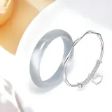 Мёбиус Твист Кольцо Серебряное Кошка Браслет + Ледяной Синий Нефритовый Браслет 58#
