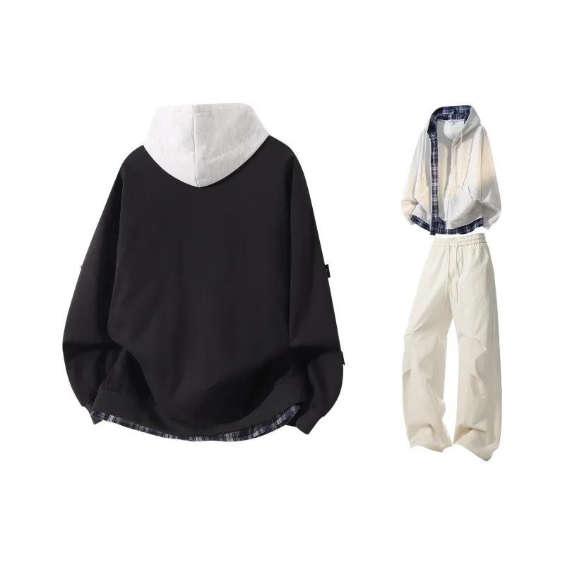Чёрный+Белый Фотиния Серый Свитшот+Чёрные Штаны