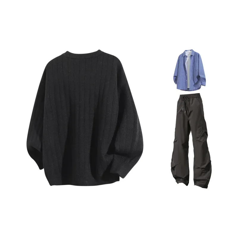 Темно-серые + черные штаны + сапфирово-синяя рубашка