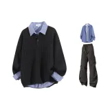 Чёрные+Светло-серые штаны+Сапфирово-синий рубашка