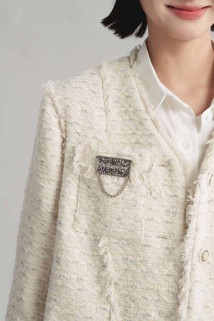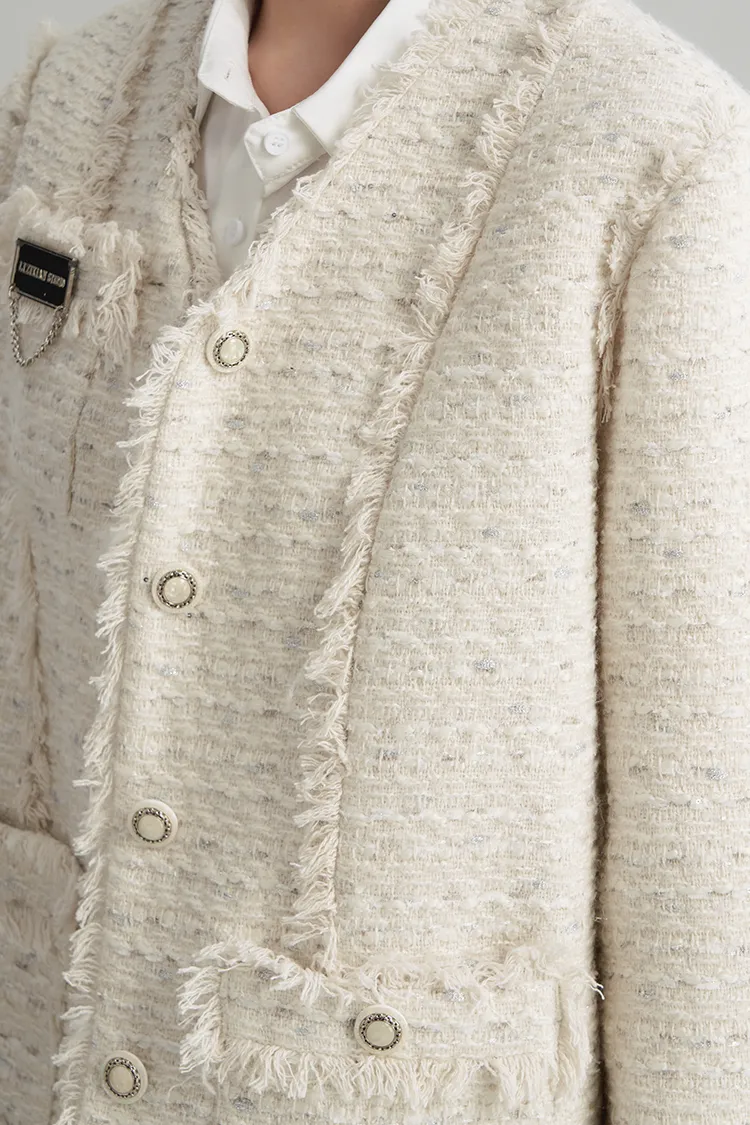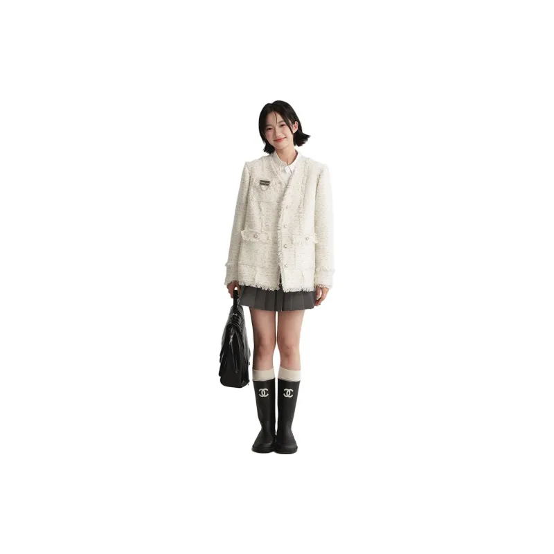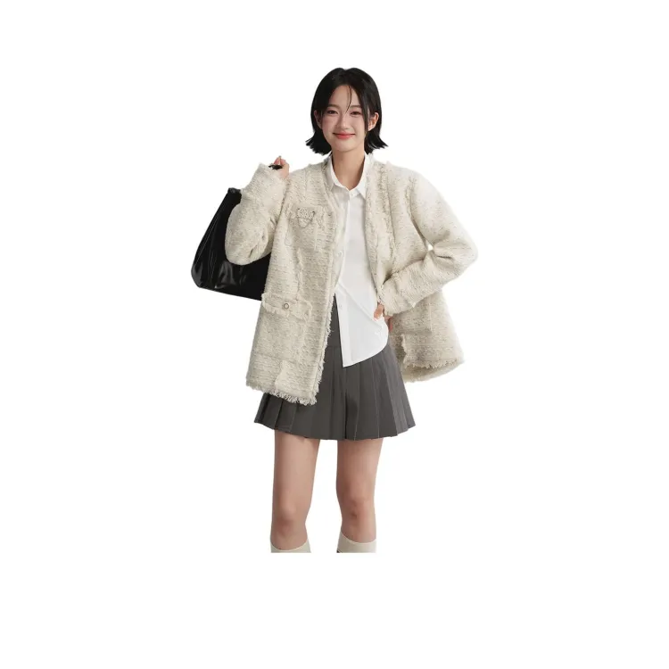 LIZIXIAN Экрю Женское Короткое Пальто