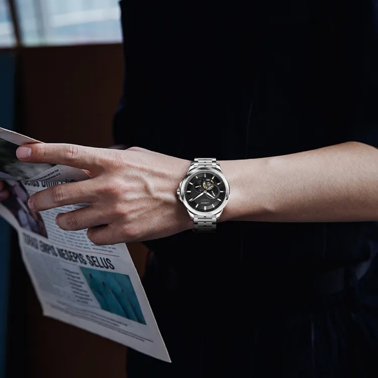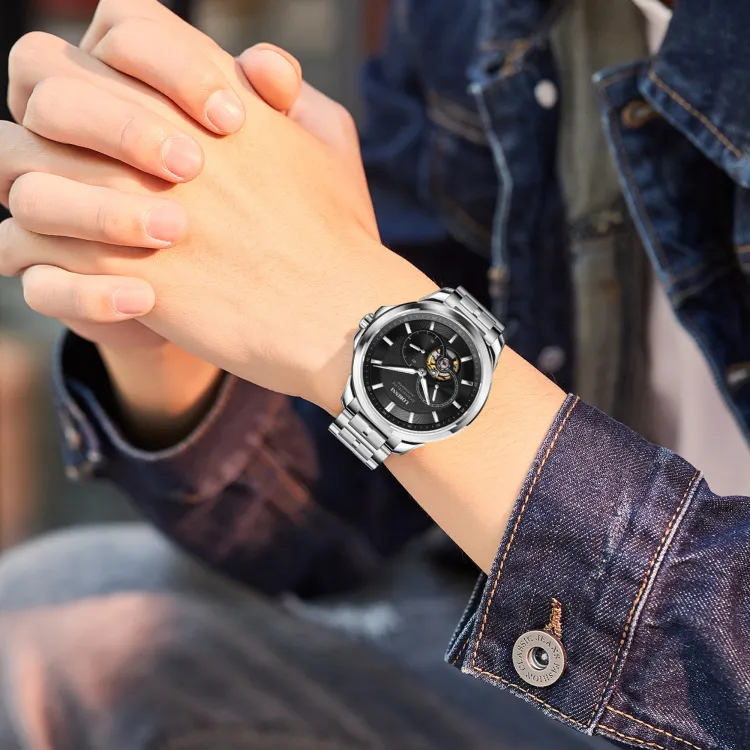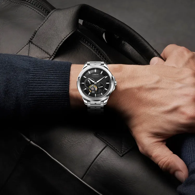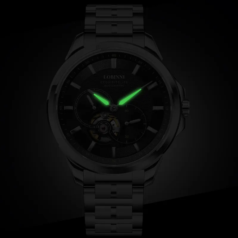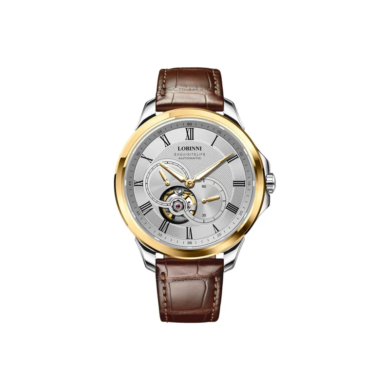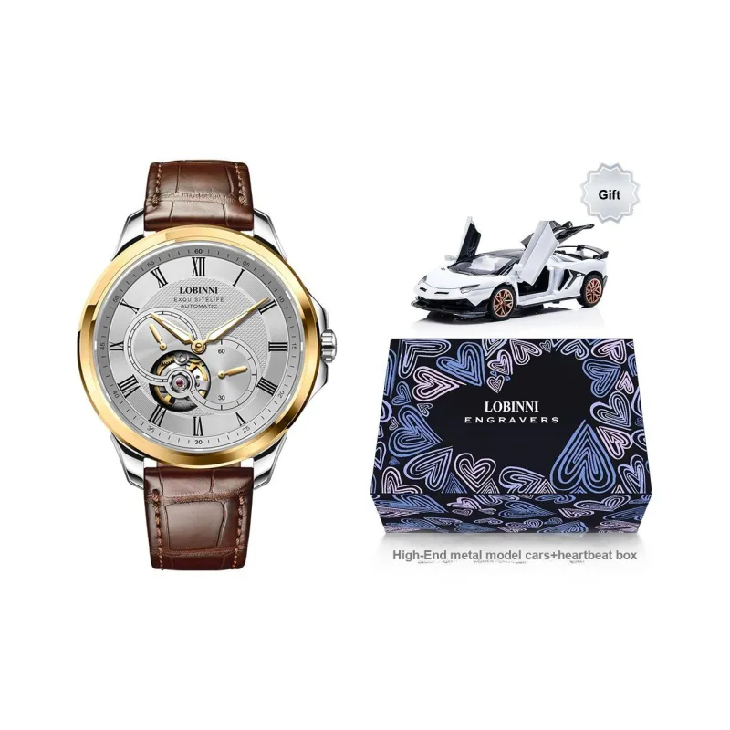 LOBINNI L Автоматический Механический Механизм Естественная Кожа Ремешок Часы Мужские Серебристый Циферблат