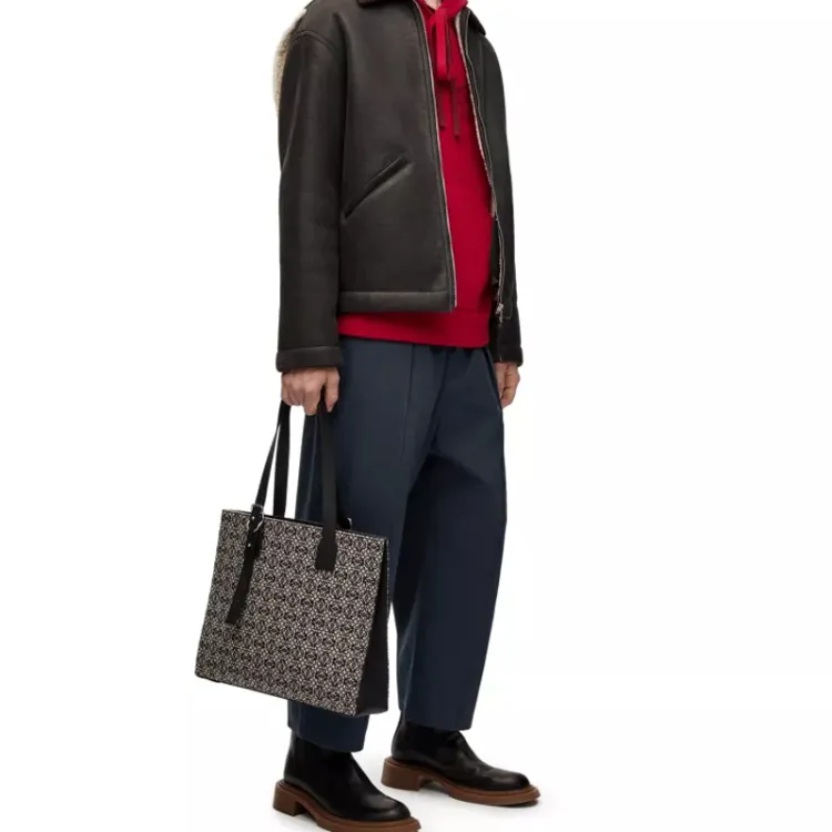 LOEWE Anagram Ткань с коровьей кожей Тоут Сумка Сумка для покупок Сумка Мужская Морской синий Черный