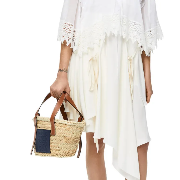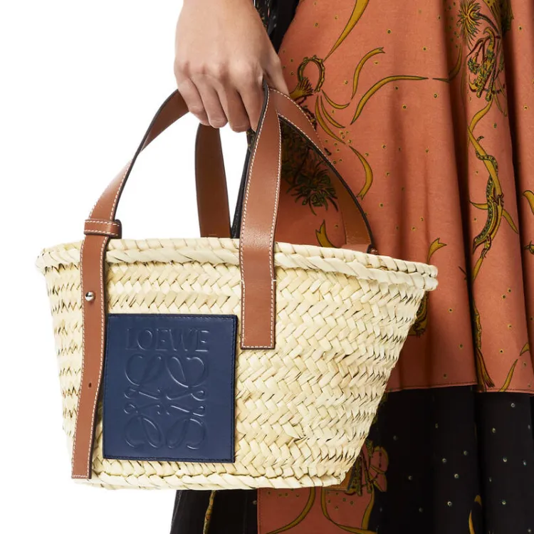 LOEWE AnagramBasket Пальмовый лист с Телячья кожа Отпуск Сумка Сумка на одно плечо Женская Коричневый