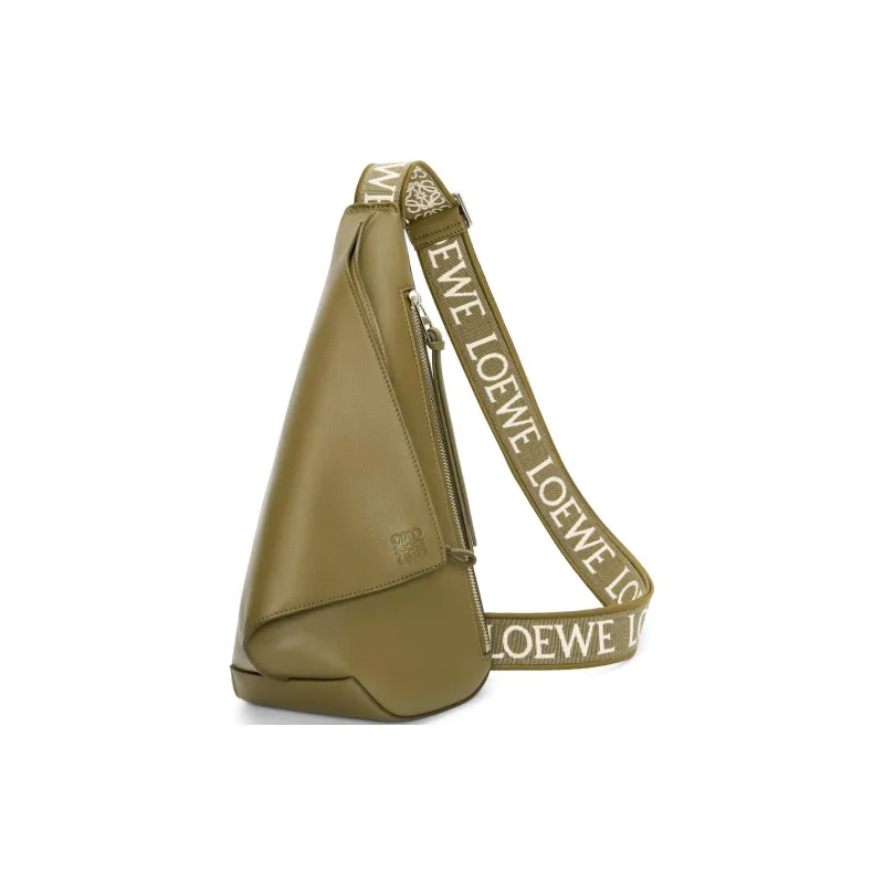 LOEWE Anton Sling Мягкий Гладкий Телячья кожа Сумка через плечо Мужская Оливково-зеленая