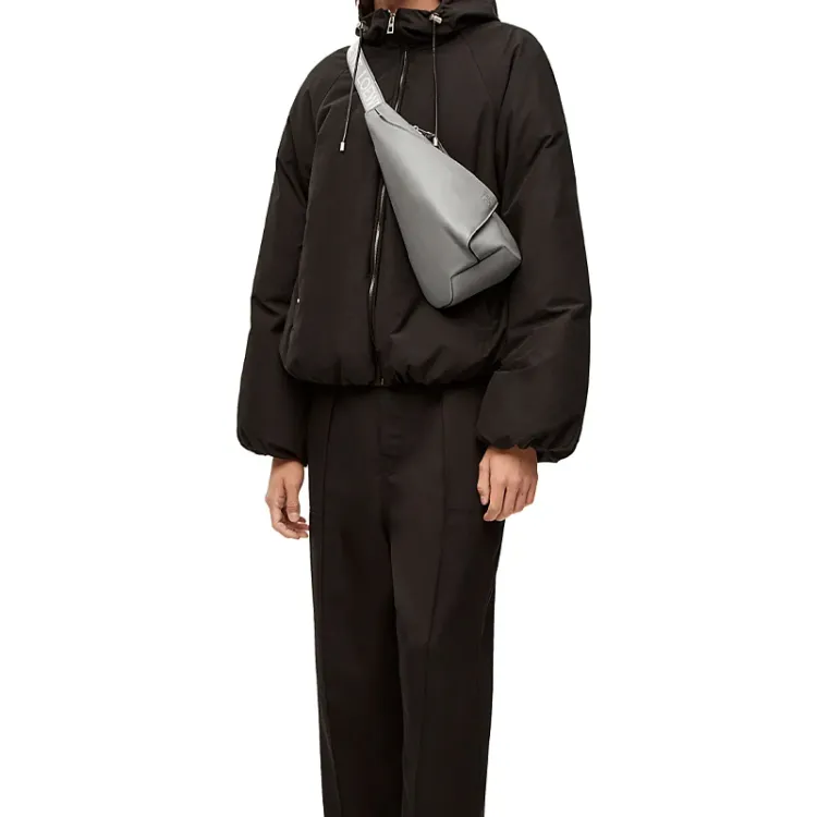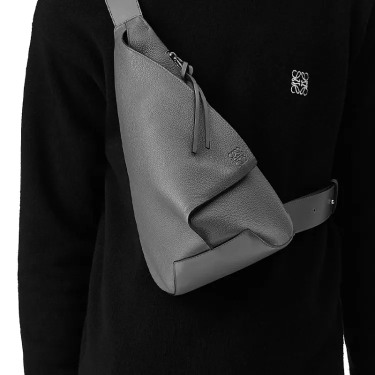 LOEWE Anton Sling Мягкая гладкая коровья кожа с жаккардовой тканью сумка через плечо на одно плечо сумка через плечо сумка-слинг мужская асфальтовый серый