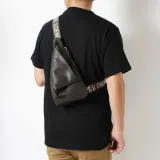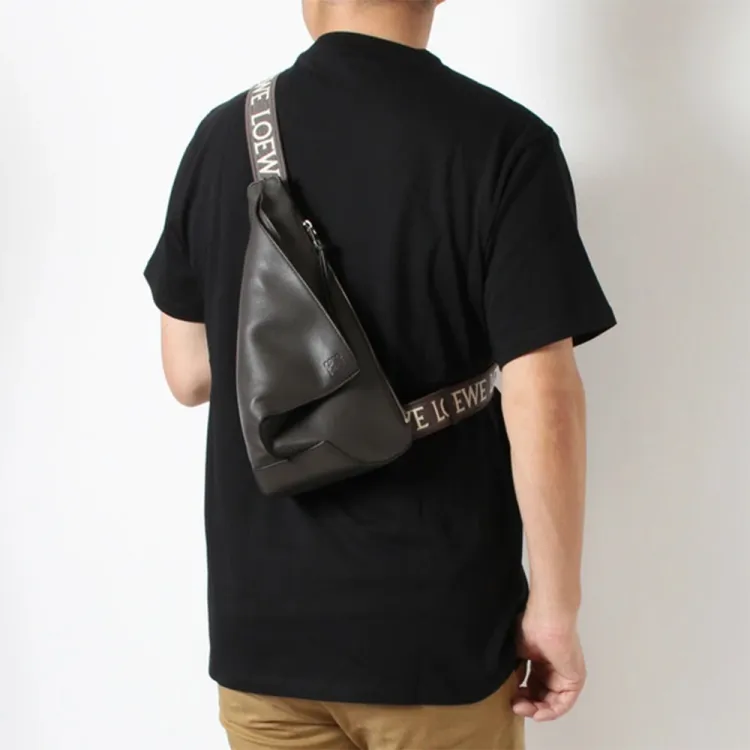 LOEWE Anton Sling Мягкая гладкая коровья кожа с жаккардовой тканью сумка Sling стандартная мужская темно-серый
