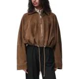 LOEWE SS Женская Предсборная Коллекция Кожа Куртка Женская Хаки