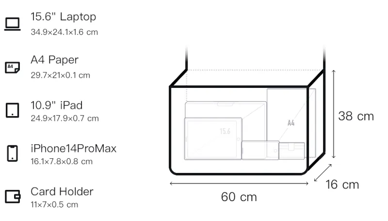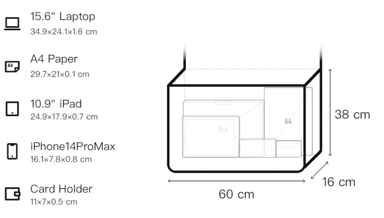 Д60*Ш16*В38см