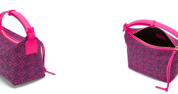 LOEWE Холст Жаккард Коровья Кожа Холст Сумка Сумка-ланчбокс Сумка через плечо Сумка Маленькая Женская Розовая Неоново-розовая
