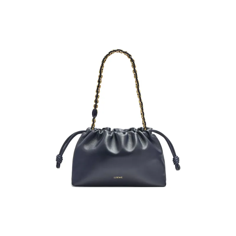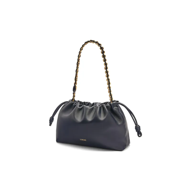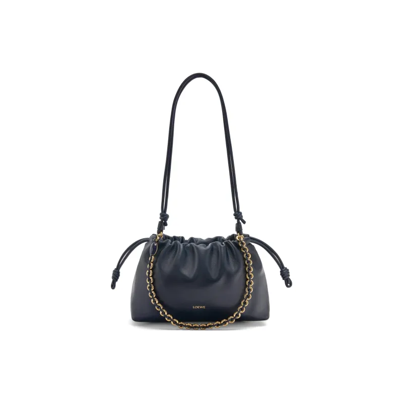 LOEWE Flamenco Мягкий Наппа Овечья кожа Плечевая сумка Кошелек Средний Женский Черный