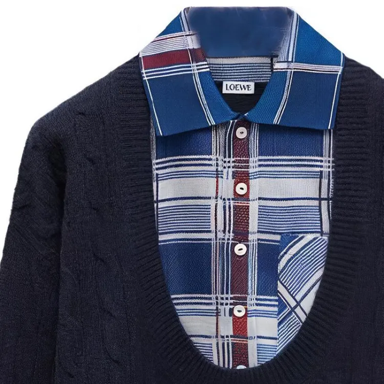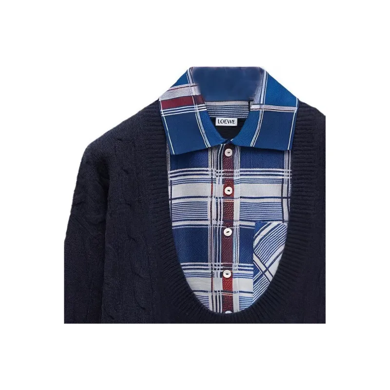 LOEWE FW24 Кашемир Свитер Мужской Морской Синий