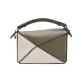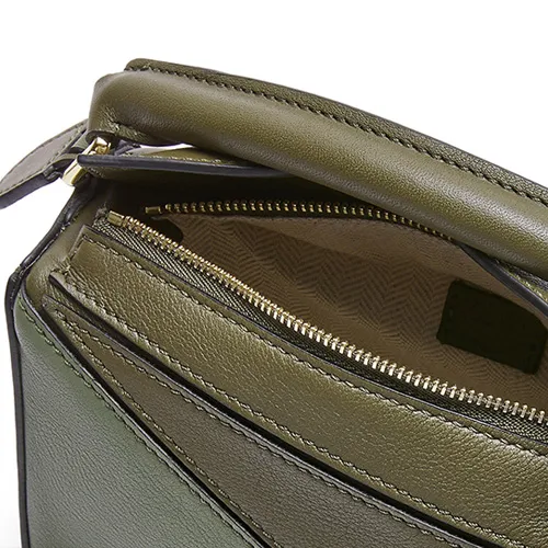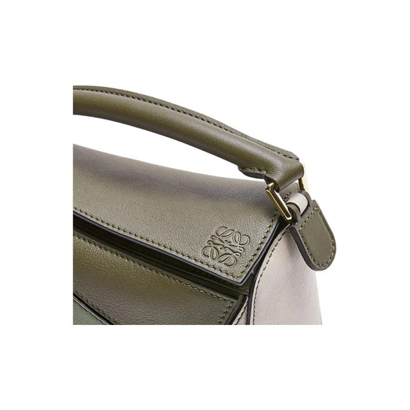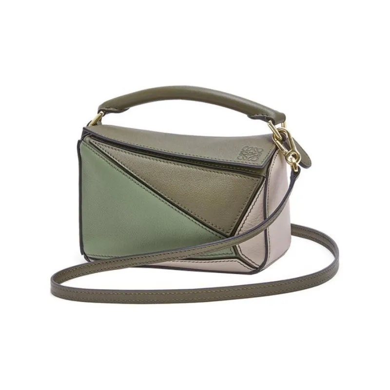 LOEWE Пазл Телячья кожа Геометрический Пазл Сумка Сумка Сумка через плечо Сумка через плечо Мини Женские Зеленый Светло-овсяный