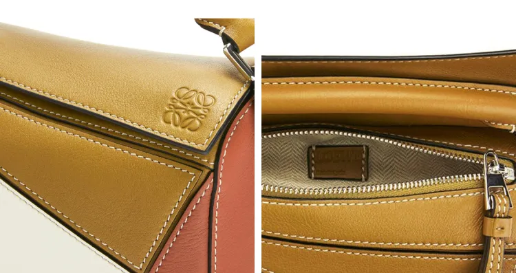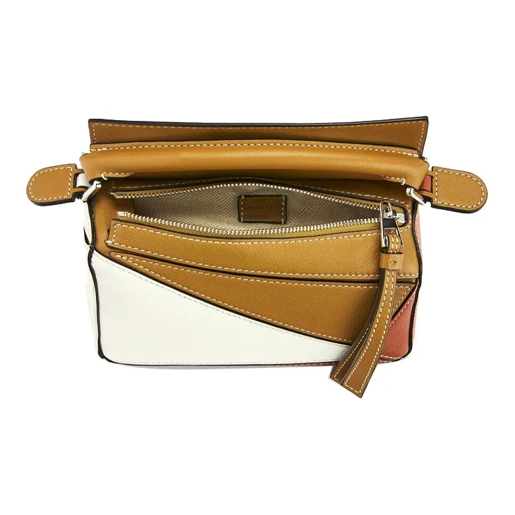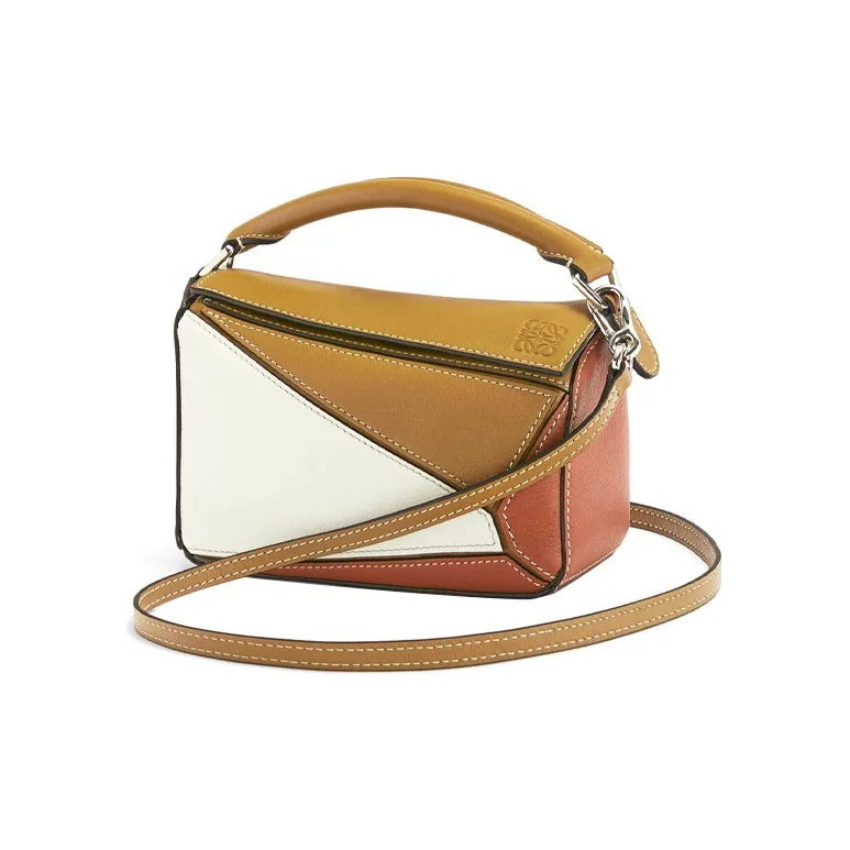 LOEWE Пазл Коровья кожа Геометрический Сумка Портативный Сумки кроссбоди Сумка через плечо Мини Women's White Коричневый