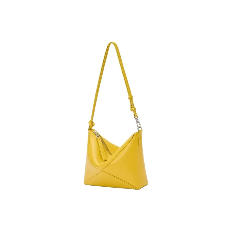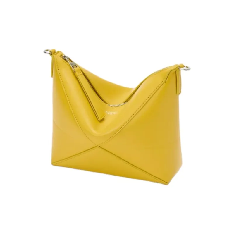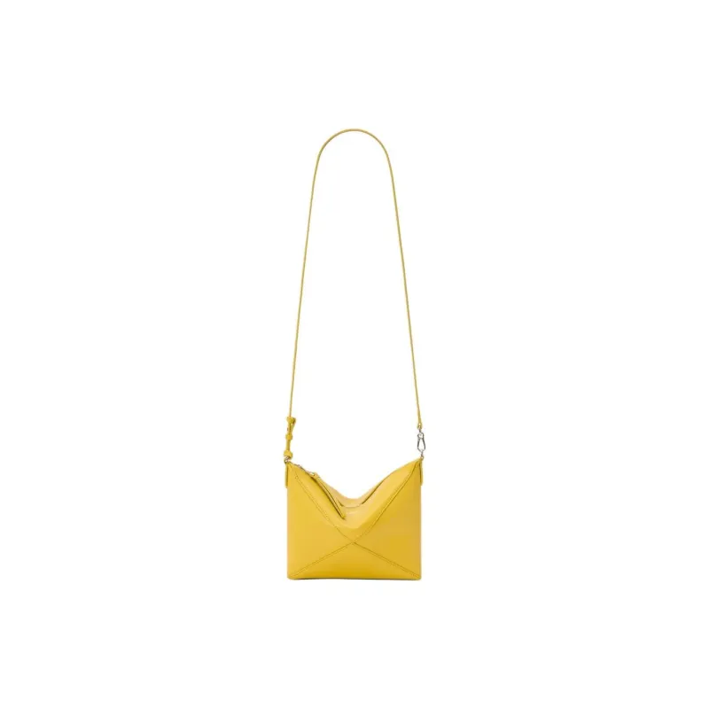 LOEWE Puzzle Fold Блестящий Наппа Телячья кожа Сумка на плечо Женские Одуванчик Желтый