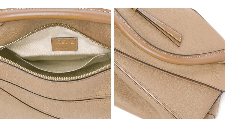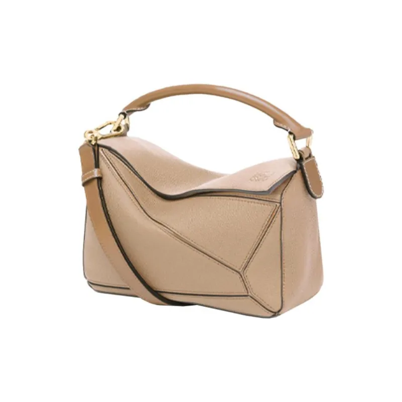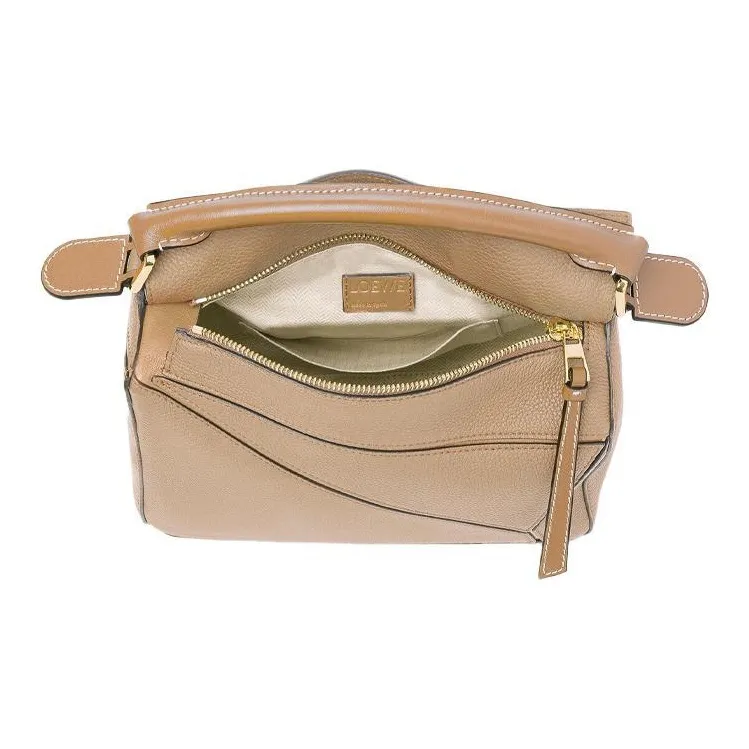 LOEWE Пазл Мягкая Коровья Зернистая Кожа Сумка Сумка через плечо Сумка через плечо Маленькая Женская Песочная Многоцветная Норка
