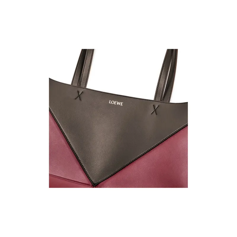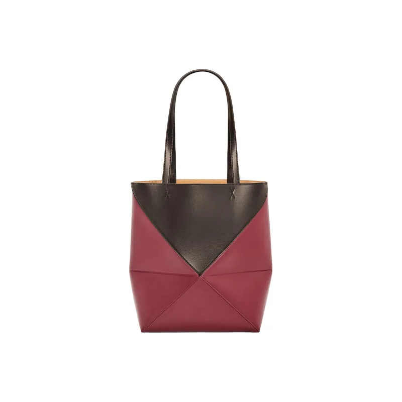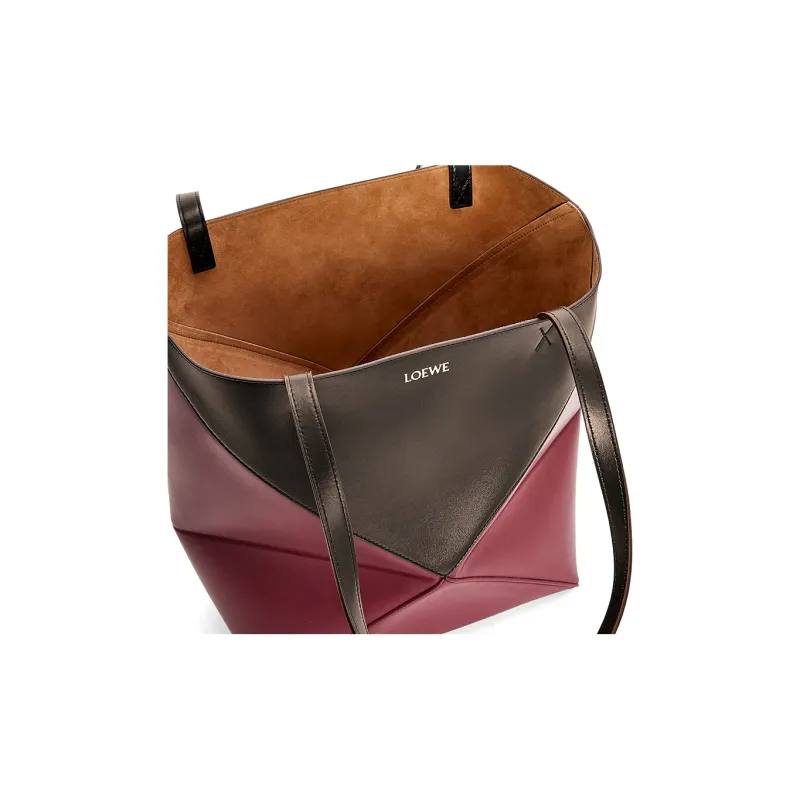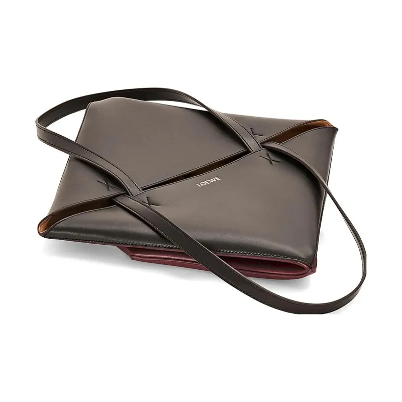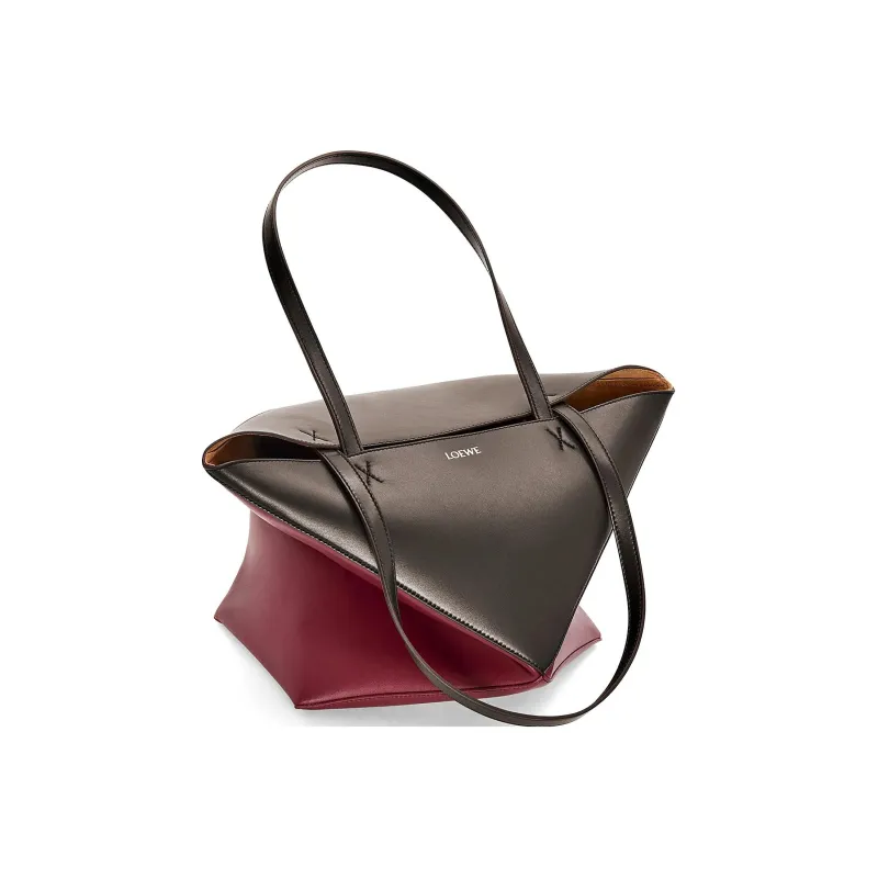 LOEWE Блестящая сумка Tote из коровьей кожи сумка для покупок сумка обычного размера женская черная вишнево-красная