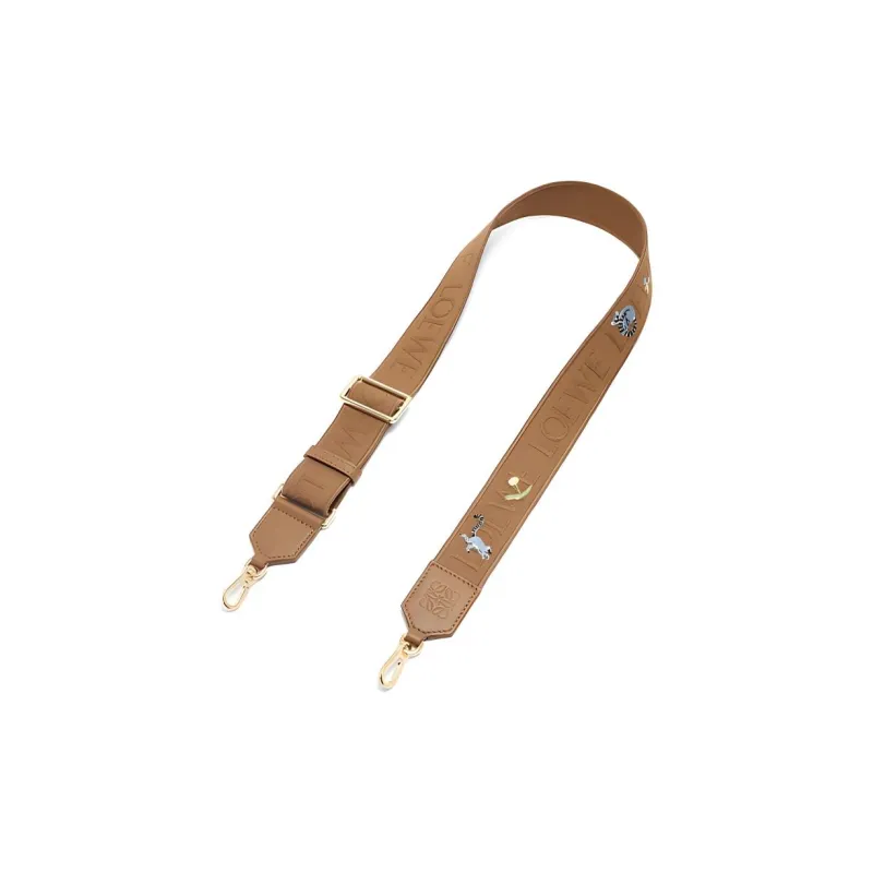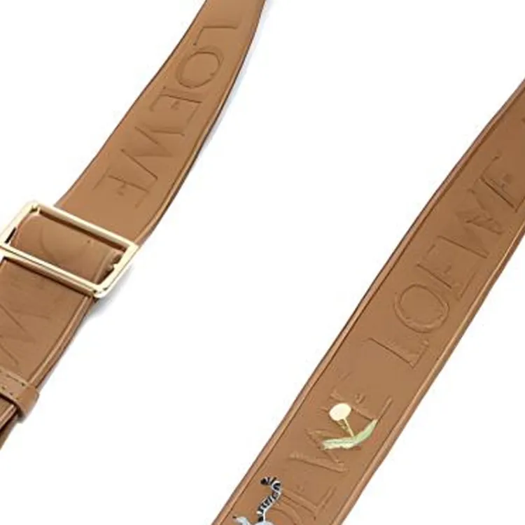 LOEWE Suna Fujita Коллаборация Вышивка Жаккард с Коровьей кожей Сумка Ремень Женские Цвет дубовый коричневый