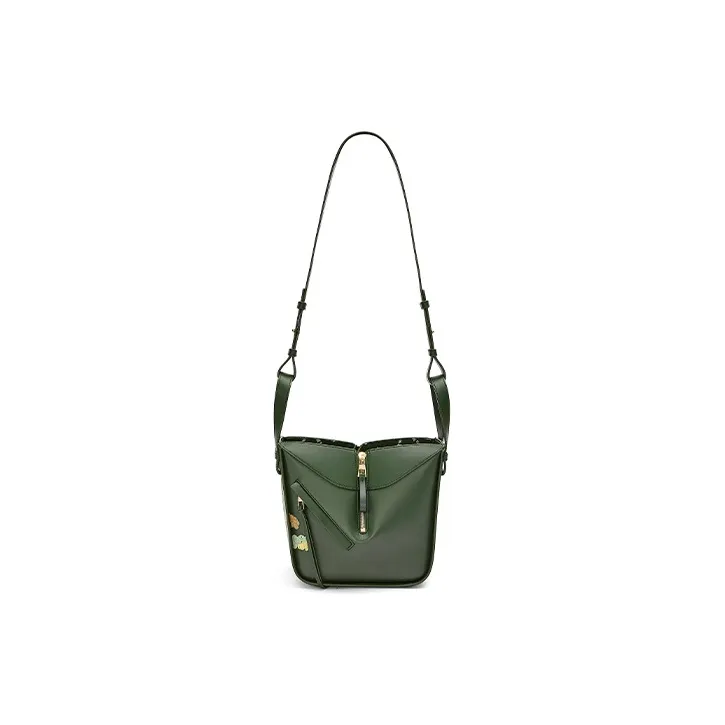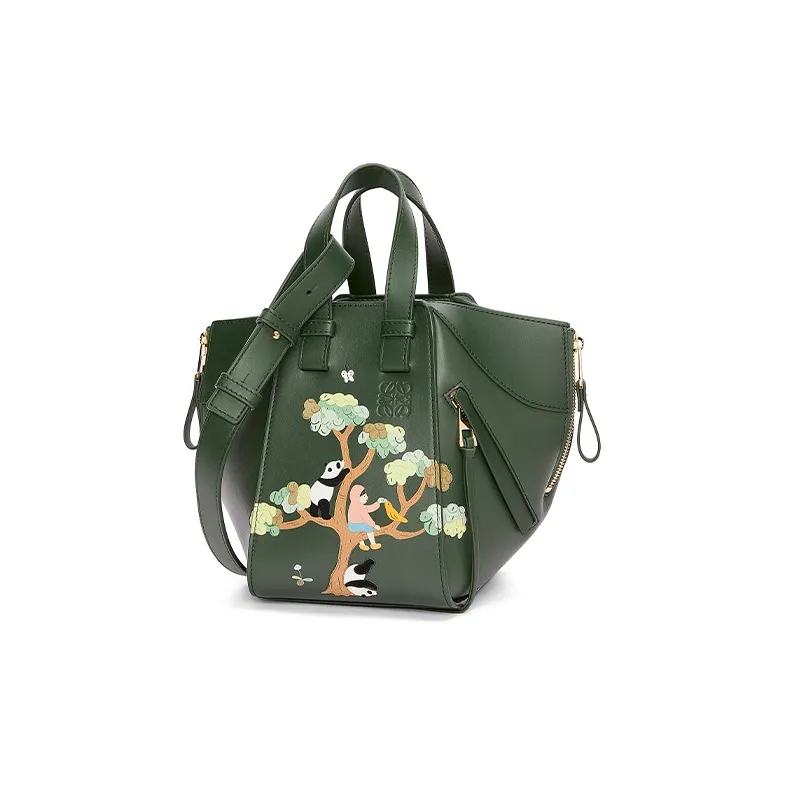 LOEWE Suna Fujita Коллаборация Hammock Сатин Коровья кожа Сумка через плечо Сумка Женские Темно-зеленый