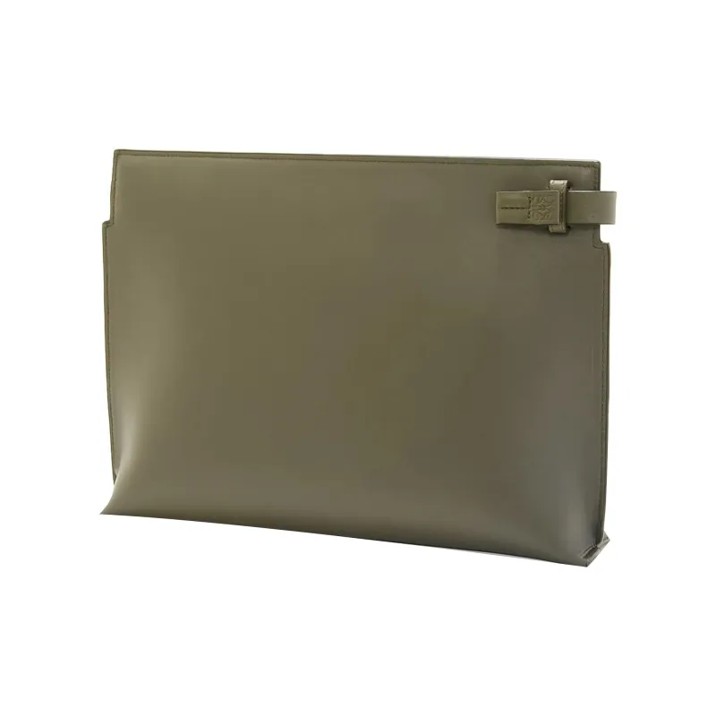 LOEWE T Pouch Bag Коровья кожа Клатч Маленький Женский Хаки зеленый