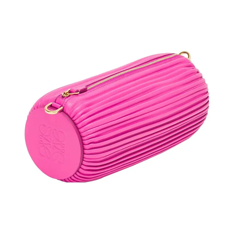 LOEWE Crinkle Nappa Sheep Leather Handbag Shoulder Bag Women's Peach Pink