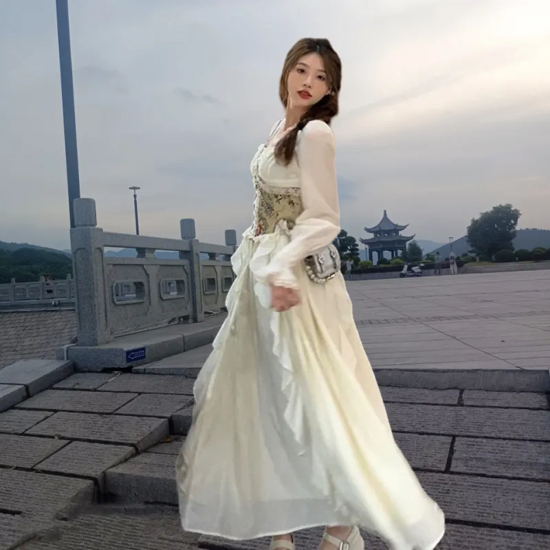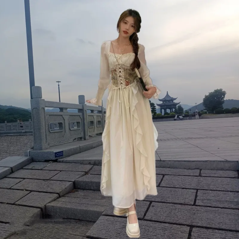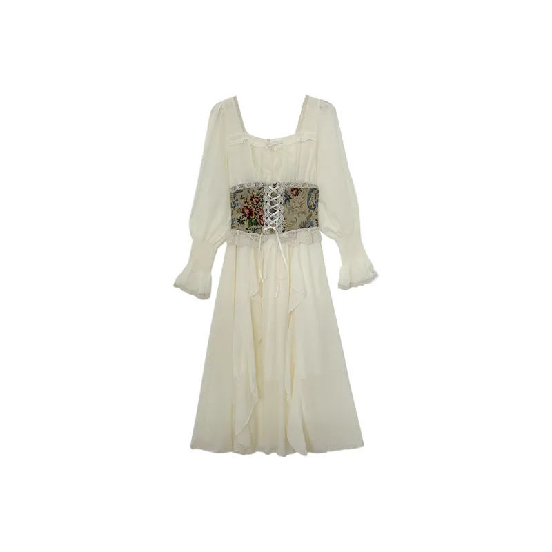 Цвет:Платье Абрикос с Жаккардом и Талия-корсет
