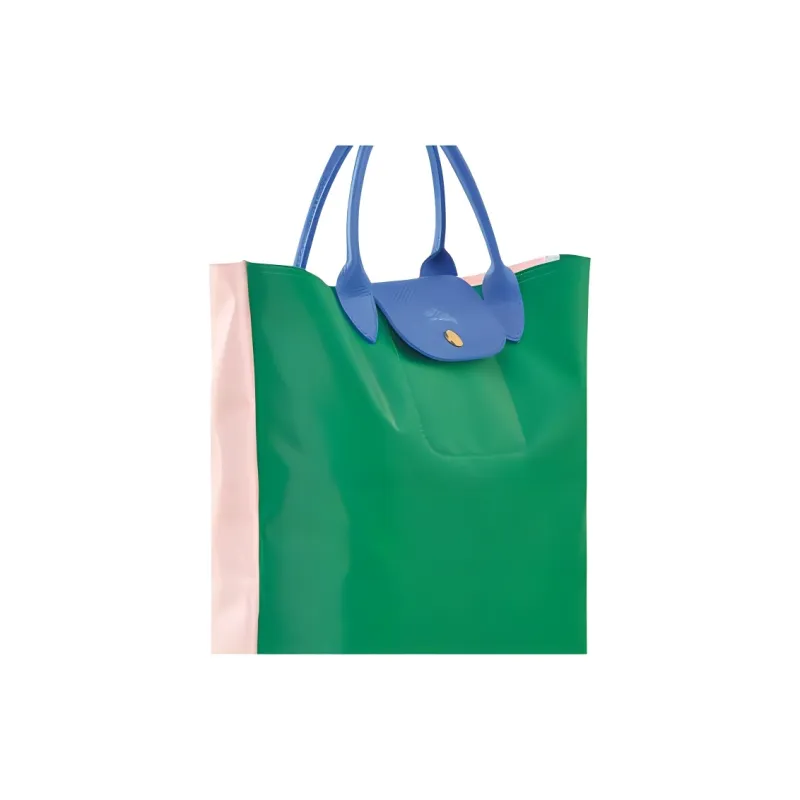 LONGCHAMP Le Pliage RE Play Холст и Кожа Комбинированная Сумка-тоут Сумка для покупок Сумка Обычная Женская Зеленая и Светло-розовая